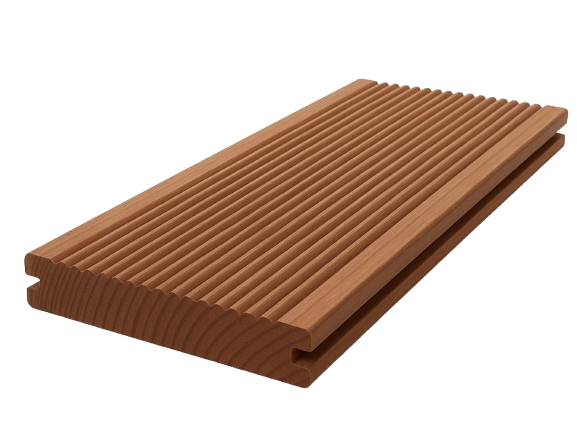 Широкі пази сприяють надійній фіксації і покращують вентиляцію під настилом, запобігаючи накопиченню вологи. Хвиляста поверхня підвищує зчеплення з взуттям і босими ногами, захищає від ковзання, а також надає оформленню простору динамічність. Завдяки правильно підібраним розмірам, дошка з пазами скорочує кількість стиків – настил виглядає акуратніше і надійніше. У результаті тераса стає місцем, де практичність і стиль органічно поєднуються.